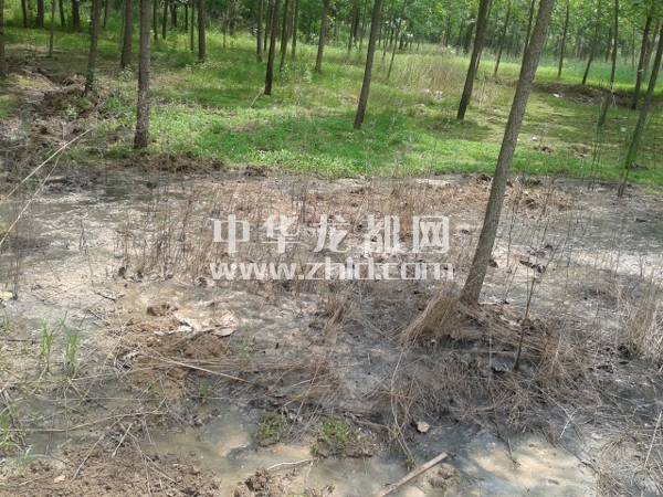 圖三:污水流過河灘,大片綠草干枯死亡。