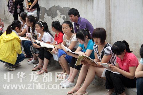考生等待進(jìn)場前許多學(xué)生突襲溫習(xí)