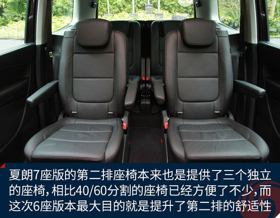 當(dāng)然作為這次新增的車款,我們還是要重點(diǎn)介紹一下夏朗6座版相對(duì)于7座版的區(qū)別。首先要說明的是夏朗7座版的第二排座椅本來也是提供了三個(gè)獨(dú)立的座椅,相比40/60分割的座椅已經(jīng)方便了不少,而這次提供的6座版本最大目的就是提升了第二排乘客的舒適性。