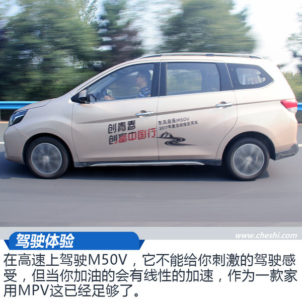 ????總結(jié):10多天來(lái),我們駕駛著M50V走過(guò)城市道路,經(jīng)歷過(guò)長(zhǎng)途旅行,上過(guò)山,爬過(guò)坡,作為一臺(tái)十萬(wàn)元以下的MPV,1.6L+CVT的動(dòng)力組合的平順性和底盤的扎實(shí)是我沒(méi)有想到的。同時(shí)在炎炎夏日車內(nèi)大開(kāi)空調(diào)能有較好的燃油經(jīng)濟(jì)性,也是一大亮點(diǎn)。對(duì)于這樣一款擁有合資品牌技術(shù)的車型來(lái)說(shuō),是有可能成為新一代神車的!
