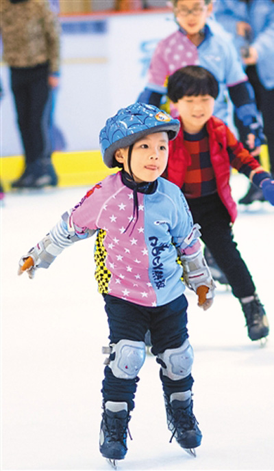 小朋友在武漢冰龍國際滑冰俱樂部上課。新華社記者肖藝九攝