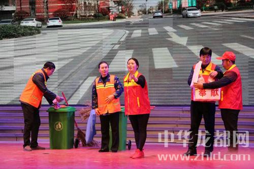 “一座小城多寧靜,千家萬戶睡夢中。環(huán)衛(wèi)工人勤勞動,爭創(chuàng)文明衛(wèi)生城?!惫?jié)目在歡快的音樂聲中幕啟。晨曦里,伴著幕后合唱,身著橙色工裝的環(huán)衛(wèi)工人在辛勤的勞動著。隨后,演員用藝術(shù)的形式再現(xiàn)了“環(huán)衛(wèi)工的辛苦”“志愿者早起送餐”“市民誤會”“委屈化解”“共獻愛心”等片段?!澳愕娜枘愕那矣型?,我也曾為偏見淚濕衣衫。咱相識在太康衛(wèi)生隊,我也是一干幾十年。掏垃圾咱同下過一坑水,除雜草咱共用過一把掀。環(huán)衛(wèi)工的辛苦都嘗遍,為的是太康空氣鮮。環(huán)衛(wèi)工的重擔都挑遍,為的是太康天更藍?!泵鎸ξ醮髬饎裾煞蚶畲笫宓囊欢蝿癯?,首次引來雷鳴般地掌聲。隨后,現(xiàn)場掌聲不斷,觀眾反應(yīng)強烈?!碍h(huán)衛(wèi)工不易,愛心早餐團隊偉大,道情表演形式新鮮,這節(jié)目演出棒得很!”觀眾李老漢看后評價說。