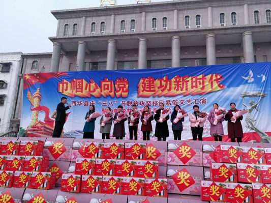 中華龍都網(wǎng)訊(周口報業(yè)全媒體記者 姬慧洋 文/圖)巾幗花開別樣紅。3月5日下午,在西華縣人民會堂前人聲鼎沸,歡歌笑語,喜氣洋洋。西華縣慶“三八”節(jié)脫貧攻堅移風(fēng)易俗文藝匯演暨巾幗脫貧行動頒獎活動正在進(jìn)行。