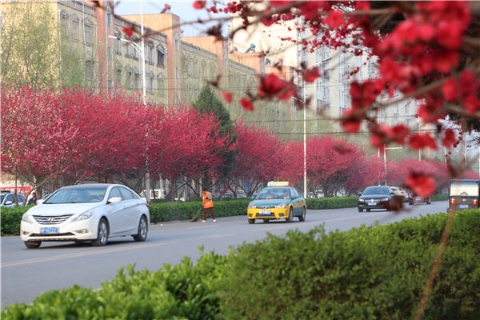 楊樹(shù)、垂柳、法桐,這是常見(jiàn)的綠化樹(shù),可是你見(jiàn)過(guò)整條道路用桃樹(shù)做綠化的嗎?在周口市建設(shè)大道西段,長(zhǎng)達(dá)1公里的主干道兩側(cè)種滿桃樹(shù)?,F(xiàn)在正值陽(yáng)春三月桃花盛開(kāi),整條道路成了一片花的海洋,儼然是鬧市區(qū)里的世外桃源。