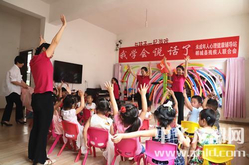 家長如此開朗,孩子們的世界肯定會更加陽光。記者隨著鄲城縣殘聯(lián)理事長楊瑞林和聾兒語訓中心主任邵莉娜來到了二樓聾兒語訓學習班?!拔覍W會說話了”,大愛至簡,教學班里僅此一句標語,墻上是一面鏡子,鏡子上貼滿了老師和孩子們一起做的彩氣球,旁邊是一架鋼琴,4位語訓老師正在張著大口(說話標準口形)、動作夸張地給孩子上聽力課,老師邊彈琴,邊做手指舞、跳少兒舞,孩子們慢慢聽、慢慢模仿、慢慢張口咿呀跟著唱……