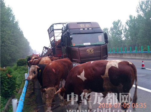 中華龍都網(wǎng)訊(周口報(bào)業(yè)全媒體記者 姬慧洋 通訊員 劉杰 文/圖)“在大廣高速2025公里西半幅附近發(fā)生一起單方事故,幾十頭牛散落在路面,請(qǐng)求處警。”7月5日5時(shí)許,周口市公安局交通管理支隊(duì)高速二大隊(duì)扶溝中隊(duì)接到110指令稱。
