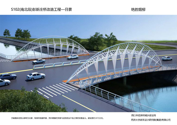 周口大道沙潁河橋景觀改造,設(shè)計(jì)造型簡單柔美,如行云流水,同時(shí)與沙潁河景觀帶相融合,給城市增添了生機(jī)與活力。周口大道賈東干渠橋以荷葉為設(shè)計(jì)元素,造型簡約而不失細(xì)節(jié)。周口大道流沙河橋造型簡潔大氣,線條流暢,像一條青龍游弋在水面上。文昌大道幸福河橋以花瓣、葉子為設(shè)計(jì)元素,造型豐富多彩。文昌大道流沙河故道橋在中分帶位置修建花壇,花壇造型莊重古樸,景石造型端莊沉穩(wěn)。太清路流沙河橋以古建斗拱、窗花為元素,造型儒雅大方。太清路洼沖溝2號橋以“輻轂相依”為名,既融合環(huán)境,又有團(tuán)結(jié)、合作的寓意。太清路賈魯河橋,增加了景觀造型,使人們可以重溫當(dāng)年賈魯河的美好畫卷。彭新莊橋以柳葉為元素,預(yù)示著留住賓客與送別親友的不舍之情的雙重含義。