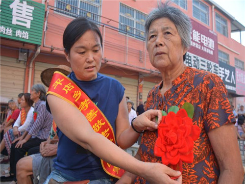 據(jù)平店鄉(xiāng)黨委書記陳靜介紹,近年來,該鄉(xiāng)始終把孝善文化建設(shè)擺在突出位置,堅(jiān)持以扶貧與扶智、扶貧與扶德相結(jié)合,持續(xù)開展了“好媳婦、好婆婆、好兒子、脫貧光榮戶”評(píng)選等一系列豐富多彩的精神文明創(chuàng)建活動(dòng),積極倡樹社會(huì)正氣,大力弘揚(yáng)時(shí)代新風(fēng),推進(jìn)了良好的家風(fēng)、民風(fēng)、鄉(xiāng)風(fēng)持續(xù)向前發(fā)展。為持續(xù)做好全鄉(xiāng)脫貧攻堅(jiān)各項(xiàng)工作,全鄉(xiāng)28個(gè)行政村、87個(gè)自然村共集中排查出來268戶、363人獨(dú)居老人戶,95%以上屬于破舊危房。通過宣傳發(fā)動(dòng),現(xiàn)在已經(jīng)接回家300多人,對(duì)破舊危房全部進(jìn)行了拆除或封堵。今天受到表彰授牌的28個(gè)家庭是在“孝善敬老、讓愛回家”活動(dòng)中涌現(xiàn)出來的“孝善敬老”的模范和標(biāo)兵。