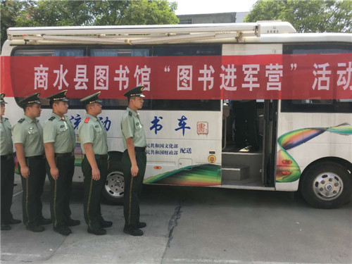 文化擁軍是商水縣圖書館的優(yōu)良傳統(tǒng)。當天,流動圖書車一來到縣武警中隊駐地,士兵們便不約而同圍了過來,有的走上圖書車尋找喜愛的圖書,有的則直接坐在車上,認真翻閱書籍。戰(zhàn)士小劉表示:“我最喜歡人物傳記方面的圖書,今天他們送來了許多。我要充分利用這些圖書,讀好書、立好志、當好兵,為實現(xiàn)中國夢、強軍夢和祖國的國防建設作出應有貢獻。”