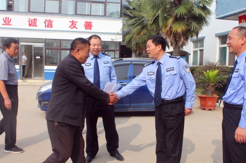 10月9日上午,李埠口鄉(xiāng)孫莊村數(shù)十名群眾代表,來到周口市公安局港區(qū)分局,將寫有“打黑除害促和諧,警民共建保平安”的錦旗和感謝信送到何學民政委的手中,村民代表對分局鐵腕鏟除該村“村霸”維護孫莊村和諧穩(wěn)定表示由衷的感謝。