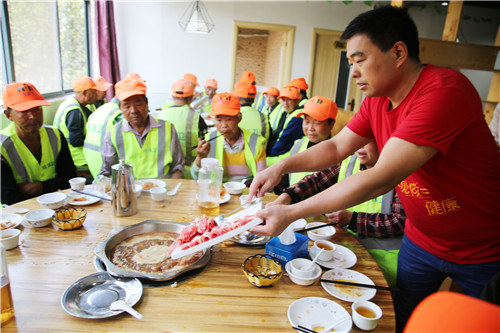 “環(huán)衛(wèi)工人的收入都不高,平時(shí)可能舍不得花錢吃頓好的,每天都見他們辛苦勞作,我就想犒勞犒勞他們?!睋?jù)了解,一個(gè)禮拜前劉東亞就開始著手準(zhǔn)備,并把自己的想法告訴了環(huán)衛(wèi)部門相關(guān)負(fù)責(zé)人,得到了環(huán)衛(wèi)部門的大力支持。記者詢問這次請(qǐng)客大概花費(fèi)了多少,他笑著說其實(shí)也不算多,每桌飯菜的標(biāo)準(zhǔn)在500元左右。