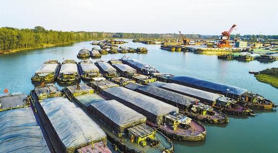 周口中心港碼頭停泊大量船只