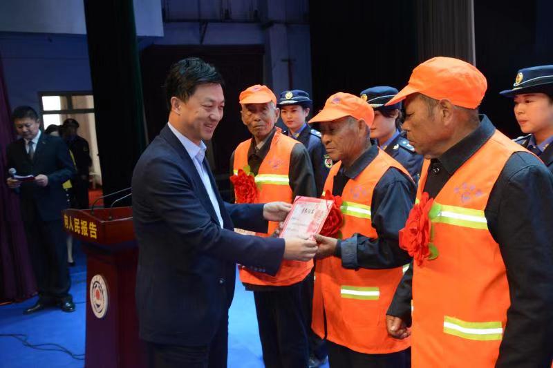 “我們環(huán)衛(wèi)工干的活又臟又累,很多人看不起我們,說我們是臭掃街的,可現(xiàn)在不同了,我們穿著統(tǒng)一的馬甲打掃衛(wèi)生,縣里領(lǐng)導(dǎo)親自給我們頒獎,把我們請到主席臺上,我覺得更有尊嚴(yán)了?!杯h(huán)衛(wèi)工郭大爺說。