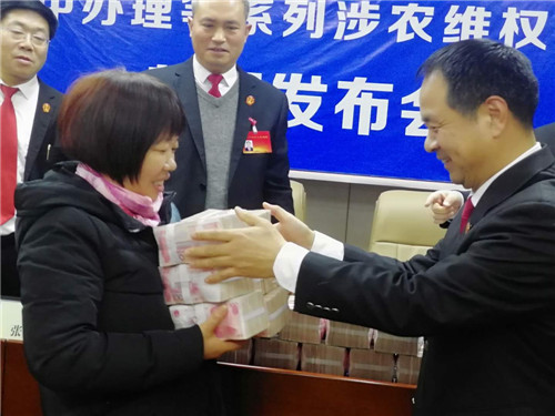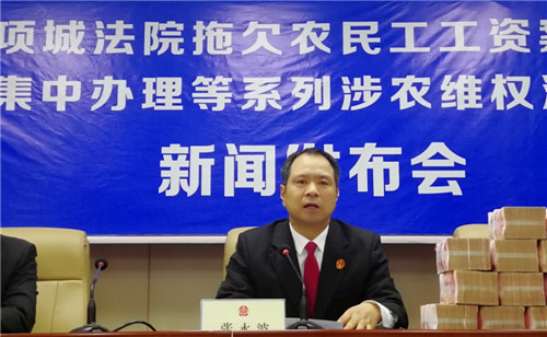 “感謝項城法院的領(lǐng)導(dǎo),他們一心為民,克服種種困難,幫助我們要回了血汗錢?!?2月24日,項城法院拖欠農(nóng)民工工資案件集中辦理等系列涉農(nóng)維權(quán)活動新聞發(fā)布會在該院召開,16名涉農(nóng)維權(quán)案件當(dāng)事人從項城法院黨組成員、院長張永波的手中接過索要許久的血汗錢,喜極而泣。