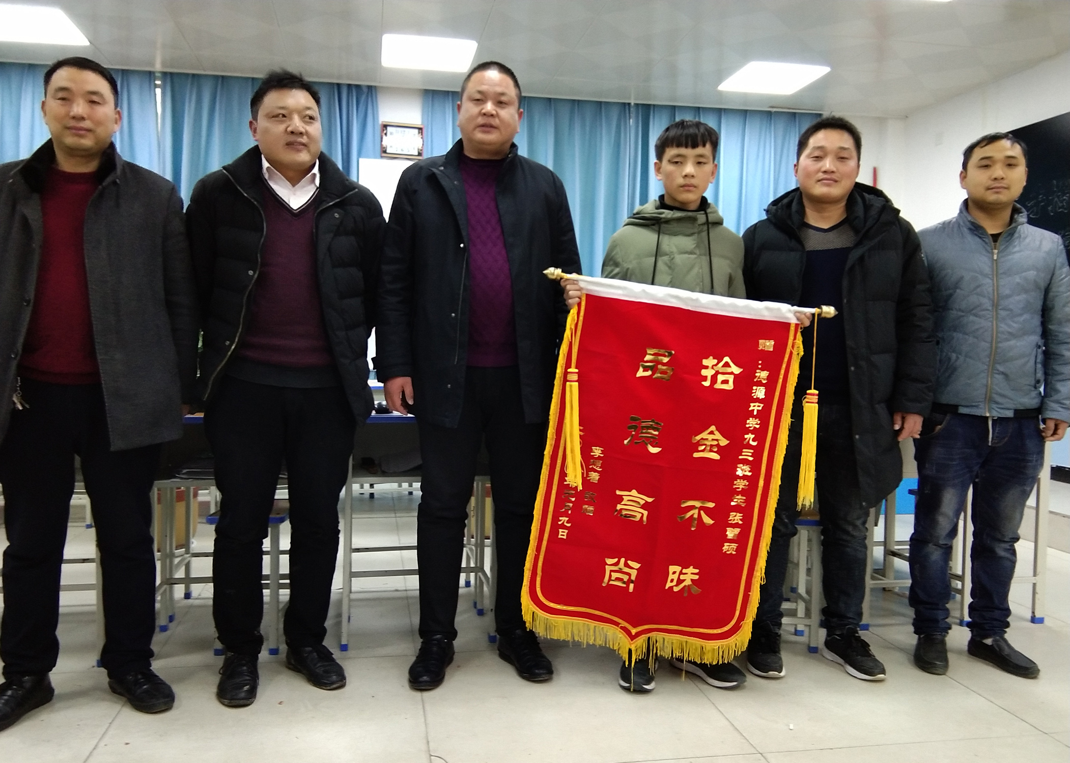 “我還以為找不回來了,里面除了錢還有那么多重要的證件,真的太重要了,我中午急著辦事情飯都吃不下!”下午3時(shí),失主李想著手拿一面加急制作的錦旗來到學(xué)校向張?jiān)T和尹紀(jì)偉老師表示感謝。他說,能有這樣品質(zhì)高尚、拾金不昧的好孩子,是老師精心培養(yǎng)、父母言傳身教的結(jié)果。