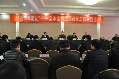 1月9日,“改革再出發(fā)”— 全市全面深化改革工作座談會(huì)在商水召開。會(huì)議對40年來全市改革開放取得的顯著成績和變化進(jìn)行暢談式總結(jié)回顧,對今后一個(gè)時(shí)期深化改革工作進(jìn)行相互啟發(fā)式思考謀劃。