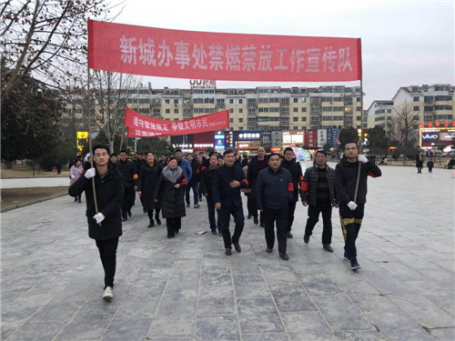 會后,黨工委書記張玉杰、辦事處主任王一博帶隊組織全體干部舉著橫幅,帶著紅袖標(biāo)徒步10多公里,到鹿鼎建材城、農(nóng)貿(mào)市場、世紀(jì)廣場、丁老家、張?zhí)枠恰⒘_堂社區(qū)等重點(diǎn)區(qū)域進(jìn)行宣傳。