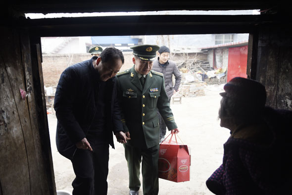 商水縣湯莊鄉(xiāng)付樓村是武警周口支隊的精準(zhǔn)扶貧村,今年春節(jié)期間,武警周口支隊支隊長楊大嶺帶著周口支隊愛民小分隊再次來到了村中,送上大米、面粉、油等生活物資,更是送來了生活上的幫助和情感上的關(guān)懷。