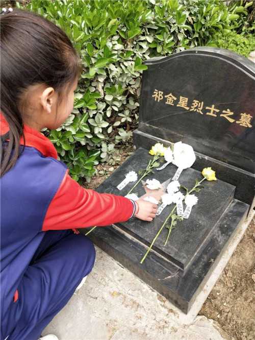 祭掃儀式在莊嚴(yán)的少年先鋒隊隊歌中拉開序幕,同學(xué)們穿戴整齊、佩戴紅領(lǐng)巾,在鮮艷的隊旗下,全體學(xué)生向革命烈士肅立、敬禮,并向烈士紀(jì)念碑敬獻(xiàn)花籃,肅立默哀,深切緬懷革命先烈,寄托對英雄的沉痛哀思和崇高敬意。