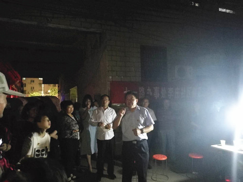 5月21日晚8時,區(qū)委書記李宗喜、區(qū)政協(xié)副主席梁顯棟、高新區(qū)管委會主任李翔與七一路辦事處負責人一起,來到位于交通路和工農路交叉口附近的陽光嘉苑小區(qū),與居民們就創(chuàng)衛(wèi)工作進行面對面的交流。