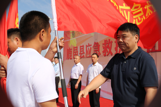 5月30日上午,鹿邑縣在縣文化中心廣場舉行應(yīng)急救援隊授旗宣誓儀式,縣委常委、常務(wù)副縣長陸志杰現(xiàn)場為全縣新整合的15支專、兼職應(yīng)急救援隊伍授旗,各應(yīng)急救援隊伍在推選代表的帶領(lǐng)下,共同舉起右手進(jìn)行了莊嚴(yán)的宣誓儀式。