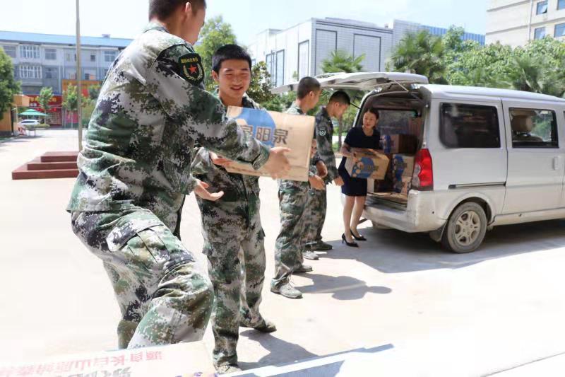 7月29日,太康縣清華園書店負責人李丹駕駛面包車,先后來到縣人民武裝部和消防大隊,為部隊官兵和消防指戰(zhàn)員送來礦泉水等。讓他們在高溫天氣里感受到清華園書店送來的絲絲清涼?!八麄兤匠S柧殹缁鸷苄量?,作為一個愛心企業(yè),關心部隊官兵是我應盡的義務。”李丹笑著說。
