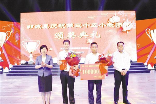 頒獎(jiǎng)儀式上,該縣隆重表彰了2019年尊師重教先進(jìn)單位、十佳師德標(biāo)兵、最具影響力校長、先進(jìn)小學(xué)幼兒園、先進(jìn)初中、先進(jìn)中心校、2019年高招目標(biāo)管理先進(jìn)單位、職業(yè)學(xué)校先進(jìn)單位等。其中,獎(jiǎng)勵(lì)鄲城一高教科研經(jīng)費(fèi)245萬元、獎(jiǎng)勵(lì)鄲城二高教科研經(jīng)費(fèi)53萬元,授予縣教體局局長劉現(xiàn)營、鄲城一高校長劉成章2019年鄲城教育突出貢獻(xiàn)獎(jiǎng),并獎(jiǎng)勵(lì)劉成章獎(jiǎng)金10萬元。
