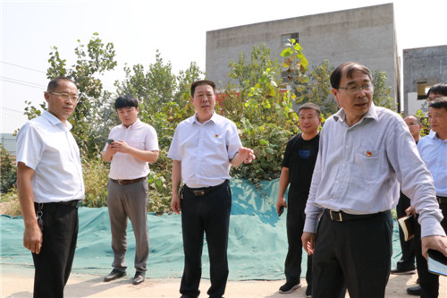 在搬口辦事處臨時過渡安置點,閆立超對安置點內(nèi)以及周邊的衛(wèi)生狀況進行仔細查看,并專題查看了改廁情況。