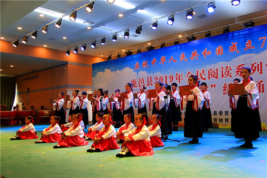 9月27日,由中共鹿邑縣委宣傳部主辦、鹿邑縣教育體育局承辦的慶祝中華人民共和國成立70周年、鹿邑縣2019年全民閱讀系列活動——全縣中小學(xué)生“歡樂進(jìn)萬家”經(jīng)典誦讀比賽(決賽)在弘德中學(xué)報(bào)告廳舉行,在初賽中嶄露頭角的十六個單位的近800名師生參加了決賽。