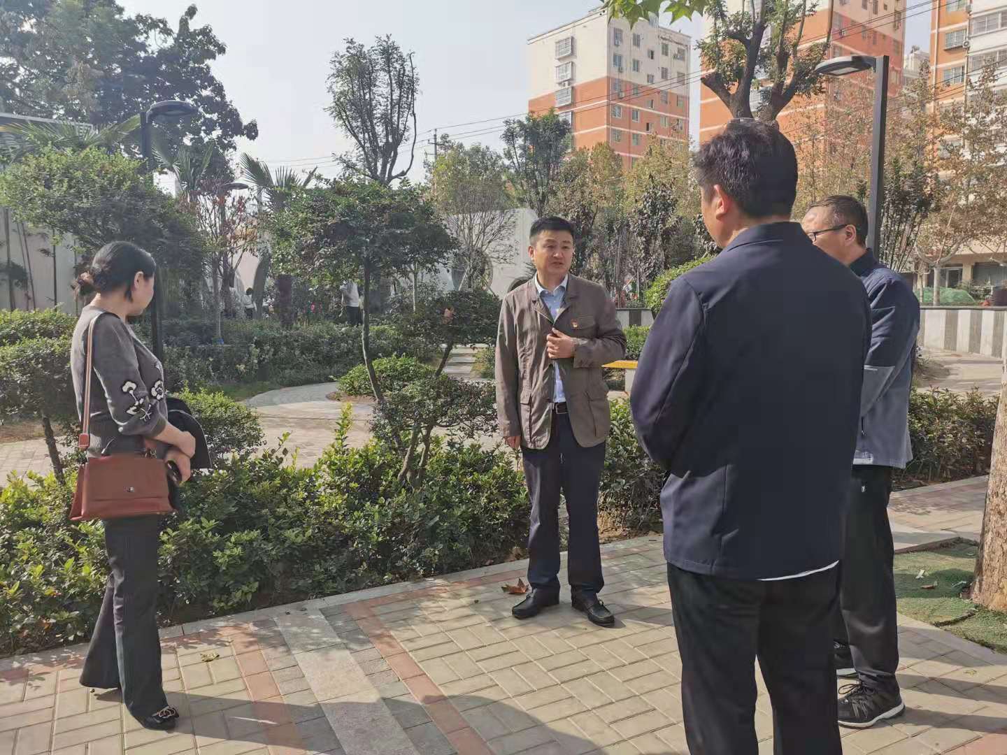 李湛還到關(guān)帝廟廣場查看樹穴美化工作,并提出指導意見。
