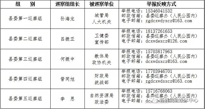 縣委各巡察組進(jìn)駐單位及舉報(bào)方式一覽表