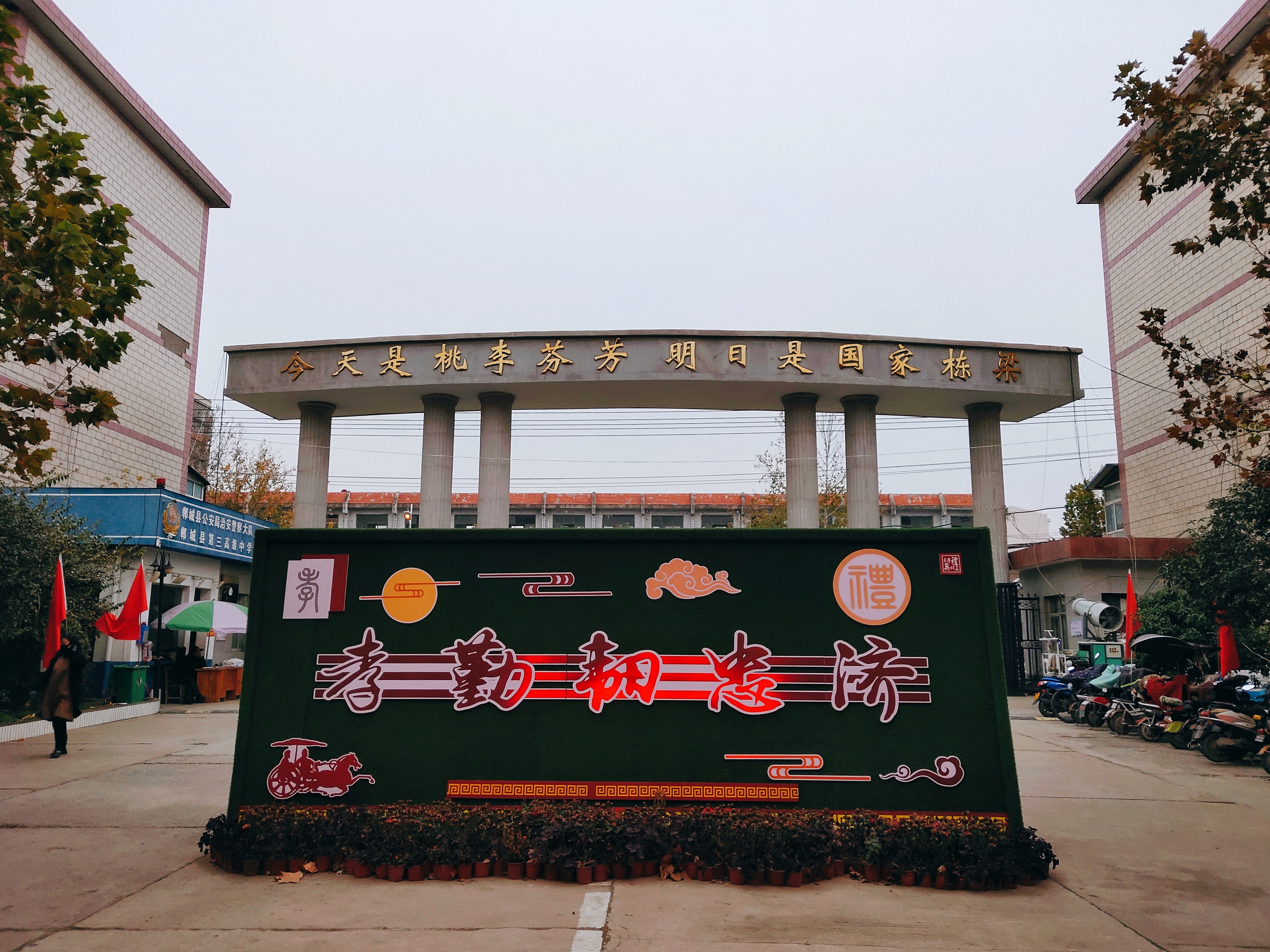 走進(jìn)三高,書香濃郁。15米寬的大門內(nèi)“自立自強(qiáng)、愛家報國”的校訓(xùn)當(dāng)門矗立,赫然醒目;展版西側(cè)即是鄲城三高萃取的“朱婷精神”及注解,時刻提醒;敏行樓迎門處“風(fēng)聲雨聲讀書聲聲聲入耳,家事國事天下事事事關(guān)心”對聯(lián)告誡學(xué)生靜心讀書、學(xué)成報國;三座教學(xué)樓分別命名為凌云書苑、勵耘書苑、至善書苑,激勵學(xué)子立凌云之志,吃耕耘之苦,塑完美之身。