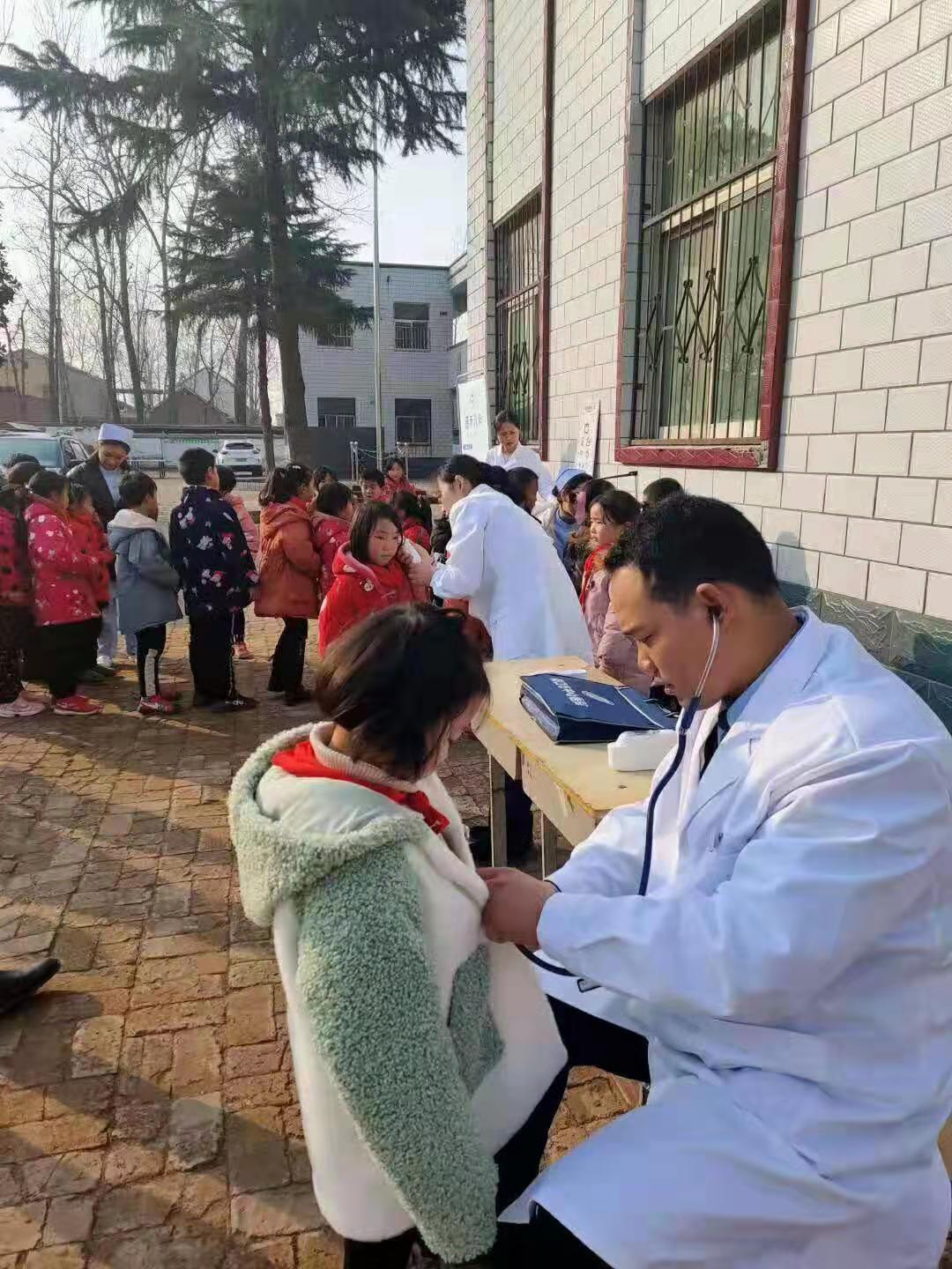 在隨后的義診活動中,普禾醫(yī)療集團兒科專家孫東風帶領(lǐng)醫(yī)療隊的成員為賈寨小學所有學生進行健康體檢,量身高、測體重、測視力、查胸透等,對有健康隱患的學生耐心講解注意事項。