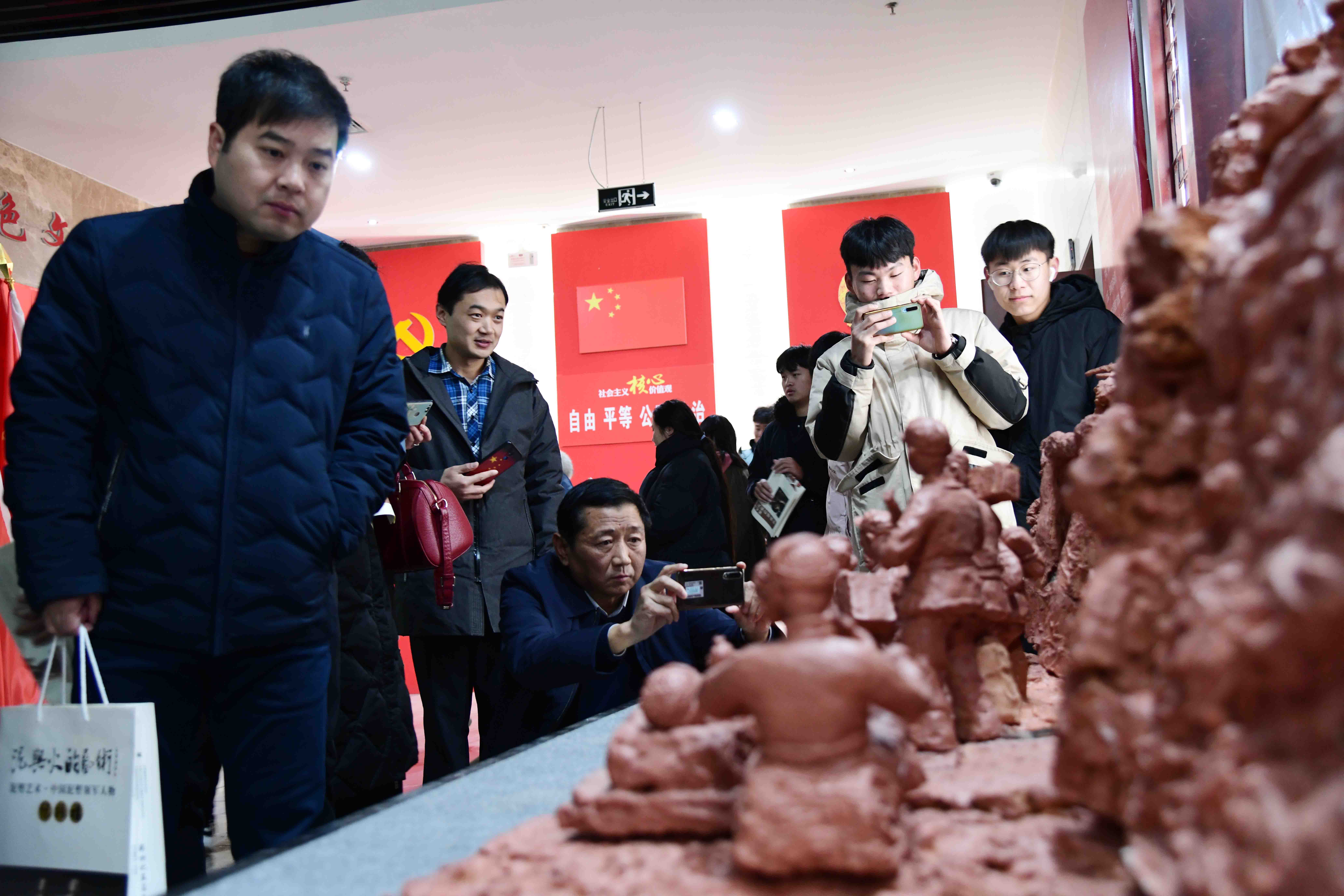 12月26日上午,由市委宣傳部、市文聯(lián)主辦,鄲城縣委宣傳部、鄲城縣文聯(lián)、周口民間文藝家協(xié)會承辦,市博物館、市非物質(zhì)文化遺產(chǎn)保護(hù)協(xié)會協(xié)辦的2019年度周口市文藝精品創(chuàng)作工程重點(diǎn)項(xiàng)目“張振福‘烽火年代’鈞瓷泥塑藝術(shù)展”在周口市文化藝術(shù)中心開展,共展出我市工藝美術(shù)大師、雕塑家張振福150多幅鈞瓷泥塑藝術(shù)品,這些很接地氣的作品藝術(shù)性地再現(xiàn)了中原農(nóng)耕時代生活圖景,反映了底層勞動人民淳樸、善良、樂觀的精神世界。