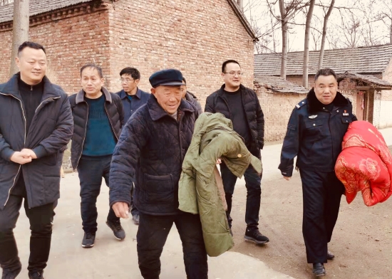 春節(jié)將至,1月20日,鄲城縣寧平派出所所長王廣宇帶領(lǐng)民警,到腰莊行政村走訪慰問抗洪搶險烈士周磊的家屬,送去了面粉、棉被、大衣等慰問品,向他的家人致以新春的祝福。