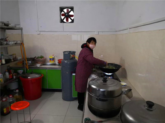 如此高強度的勞動,對于年過六旬的她實在有些繁重。但吳素霞從未抱怨一聲,依然笑臉相迎每一位就餐者。她說:“我身為一名共產(chǎn)黨員,雖然無法到一線去防控疫情,但保障好大家的伙食是我義不容辭的責(zé)任。大伙吃好了才能抵御冬日的寒風(fēng),安心站崗、舒心宣傳。相信在大伙的辛勤努力下,咱鄉(xiāng)一定會戰(zhàn)勝病毒,疫情一定會早日解除?!?/p>