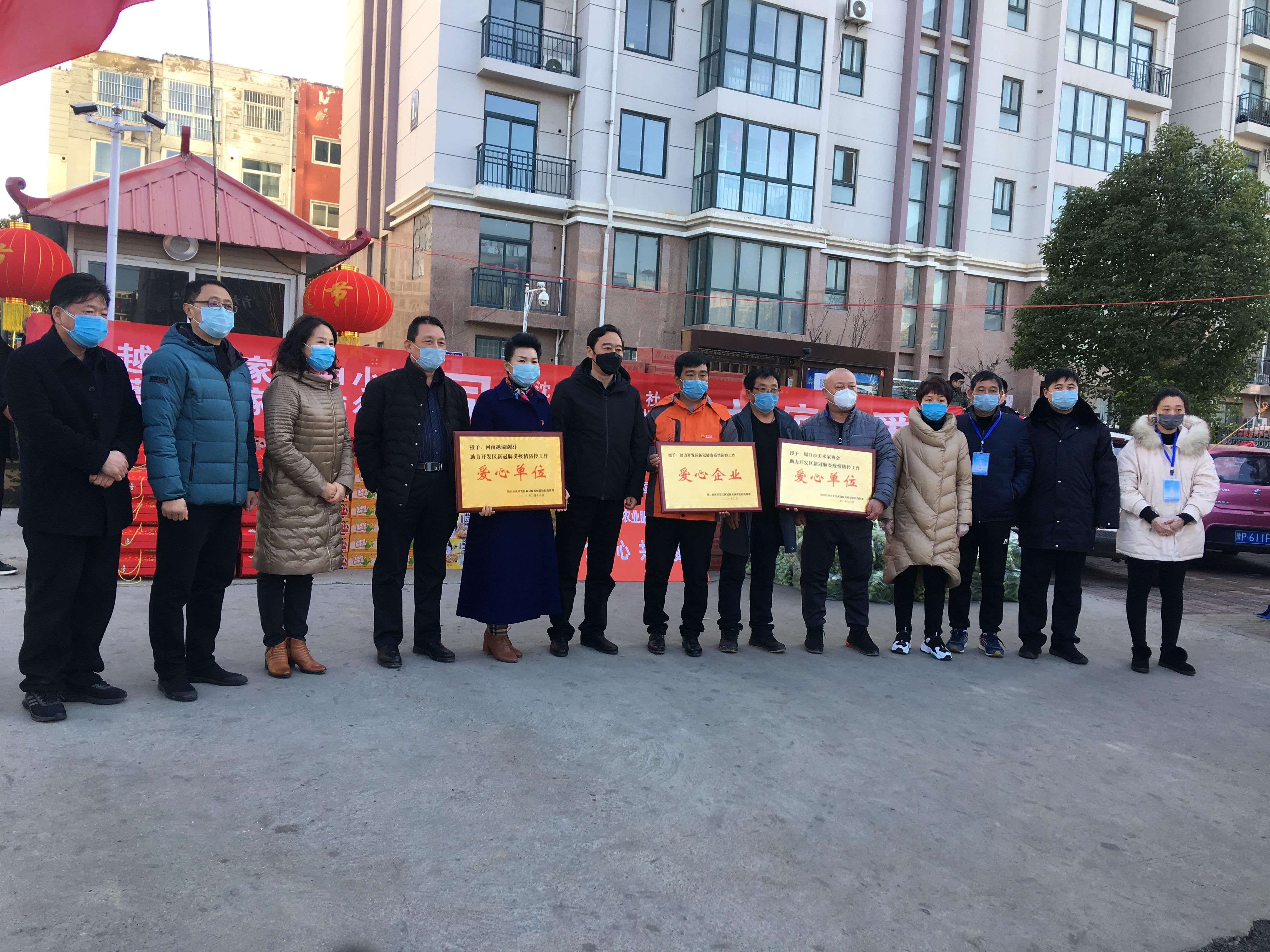3月16日,越調名家、河南越調劇團團長申小梅偕同愛心企業(yè)為開發(fā)區(qū)居家隔離群眾送來生活用品,助力開發(fā)區(qū)疫情防控工作。開發(fā)區(qū)管委會主任劉濤,管委會副主任谷靜、于杰參加捐贈活動。開元路產(chǎn)業(yè)集聚區(qū)泰和公館小區(qū)于2月3日出現(xiàn)一起疑似病例,2月4日被確診為新冠肺炎。為有效切斷病毒傳播渠道,經(jīng)開發(fā)區(qū)和市新冠肺炎疫情防控指揮部溝通,決定對泰和公館小區(qū)居民實行居家隔離,開發(fā)區(qū)在泰和公館小區(qū)門口設置卡點,要求小區(qū)所有人員居家隔離。申小梅等心系被隔離群眾,積極聯(lián)系沈丘金豐公社、宛丘生態(tài)農(nóng)場、國風藝術中心三家企業(yè),決定對他們實施愛心捐助。當日,申小梅偕同沈丘金豐公社、宛丘生態(tài)農(nóng)場、國風藝術中心,為泰和公館小區(qū)居民送來了小面包30箱、熱狗腸20箱、八寶粥30箱、方便面37箱、青菜50包。 開發(fā)區(qū)管委會主任劉濤對申小梅等愛心人士的義行善舉表示感謝,表示有各界的大力支持,有廣大群眾的積極支持,有一線工作人員的努力付出,開發(fā)區(qū)一定能夠戰(zhàn)勝疫情,奪取疫情阻擊戰(zhàn)的最后勝利。 開發(fā)區(qū)疫情防控指揮部為河南越調劇團、市美術家協(xié)會和愛心企業(yè)頒發(fā)“助力開發(fā)區(qū)新冠肺炎疫情防控工作愛心單位(企業(yè))”牌匾。我市著名畫家?guī)熜欣⒓泳栀浕顒印?/p>