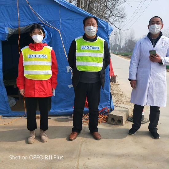 3月9日,春雨淅瀝,劉志杰仍在村口卡點冒雨堅守崗位。女兒劉苗苗此時正在村里登記排查,為村民測試體溫,父女倆一個內防疫情輸入,一個外防疫情擴散,點上嚴管,面上嚴查,這感人一幕,將會深深印刻在任莊行政村村民們的腦海中!