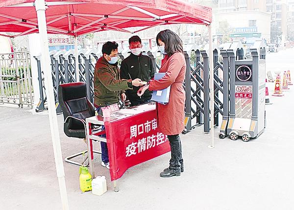 周口市審計局對進入單位人員認真測量體溫。方清 攝