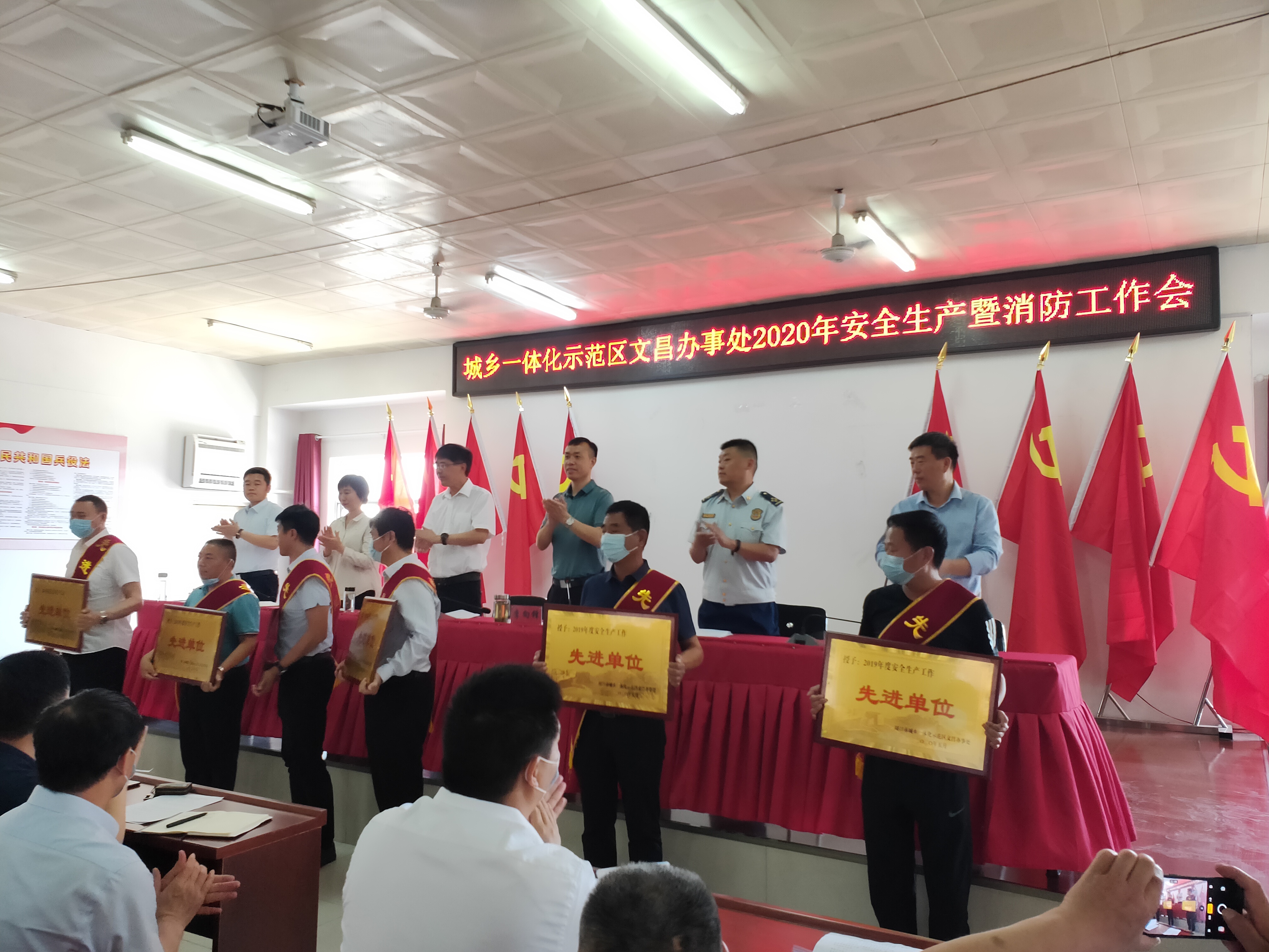 會(huì)前,與會(huì)人員共同觀看了安全生產(chǎn)警示教育片。文昌辦事處黨委副書記、武裝部長(zhǎng)葉林洋、高磊分別宣讀了《周口市城鄉(xiāng)一體化示范區(qū)文昌辦事處關(guān)于調(diào)整安全生產(chǎn)委員會(huì)成員的通知》、《示范區(qū)全國(guó)兩會(huì)期間消防安全專項(xiàng)整治方案》。會(huì)議對(duì)2019年度安全生產(chǎn)先進(jìn)單位和先進(jìn)個(gè)人進(jìn)行了表彰;各社區(qū)負(fù)責(zé)人向胡光輝遞交《2020年度安全生產(chǎn)目標(biāo)責(zé)任書》。
