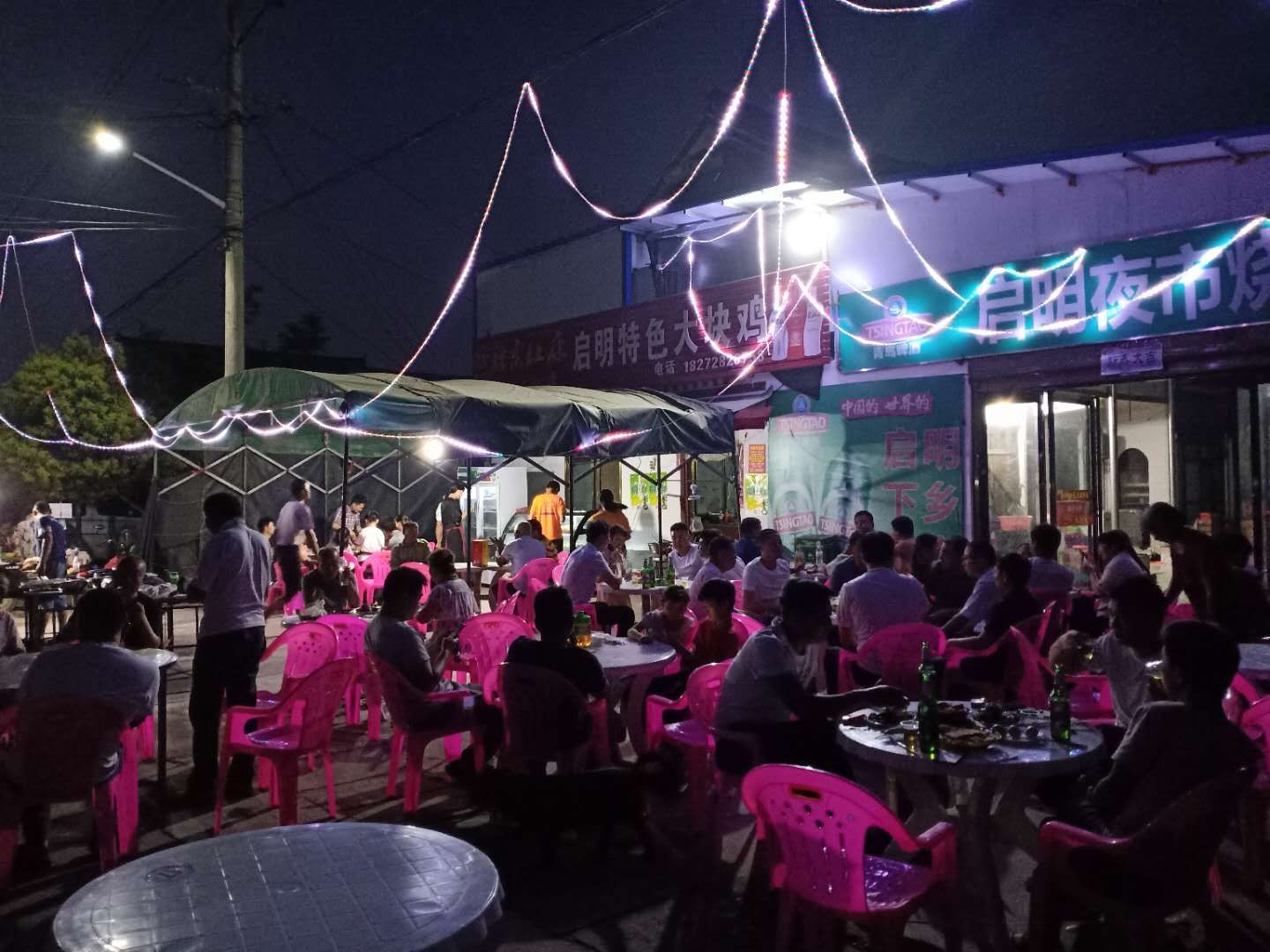 在這里,村民可以吃到各種特色美食:烤魷魚、烤肉串、烤魚丸、烤面筋、涮毛肚、烤冷面、臭豆腐……顧客們吃得高興,攤主們也忙得不亦樂(lè)乎。