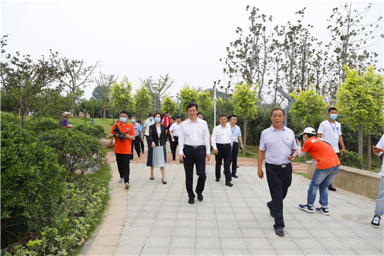 開園儀式結(jié)束后,與會領(lǐng)導(dǎo)在志愿者的引導(dǎo)下乘車沿公園步道對賈魯河生態(tài)濱河公園進(jìn)行參觀游覽。