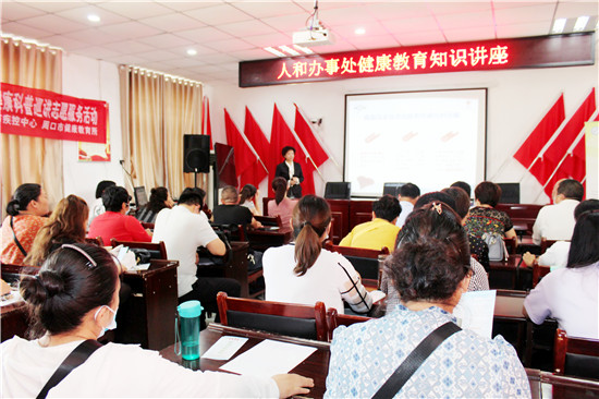 18日下午, “健康周口行 大醫(yī)獻(xiàn)愛(ài)心”健康教育志愿服務(wù)隊(duì)?wèi)?yīng)邀走進(jìn)川匯區(qū)人和辦事處,為干部職工和轄區(qū)居民作了《保持健康生活方式、掌握幸福長(zhǎng)壽鑰匙》講座。講座現(xiàn)場(chǎng),來(lái)自周口市中心醫(yī)院心內(nèi)四科的劉華玲主任利用ppt課件,分別從健康基本知識(shí)和理念、健康生活方式與行為及健康基本技能做了詳細(xì)分析講解,圍繞健康四大基石,結(jié)合群眾常見(jiàn)健康知識(shí)誤區(qū),對(duì)所講內(nèi)容進(jìn)行總結(jié)概括,進(jìn)一步加深了轄區(qū)居民對(duì)健康素養(yǎng)知識(shí)的理解。同時(shí),結(jié)合真實(shí)病例,深入淺出地為大家講解了高血壓的基本概念、分類(lèi)、高血壓治療原則和目標(biāo)、難治性高血壓的處理等,重點(diǎn)強(qiáng)調(diào)了高血壓常見(jiàn)危險(xiǎn)因素及預(yù)防措施。
