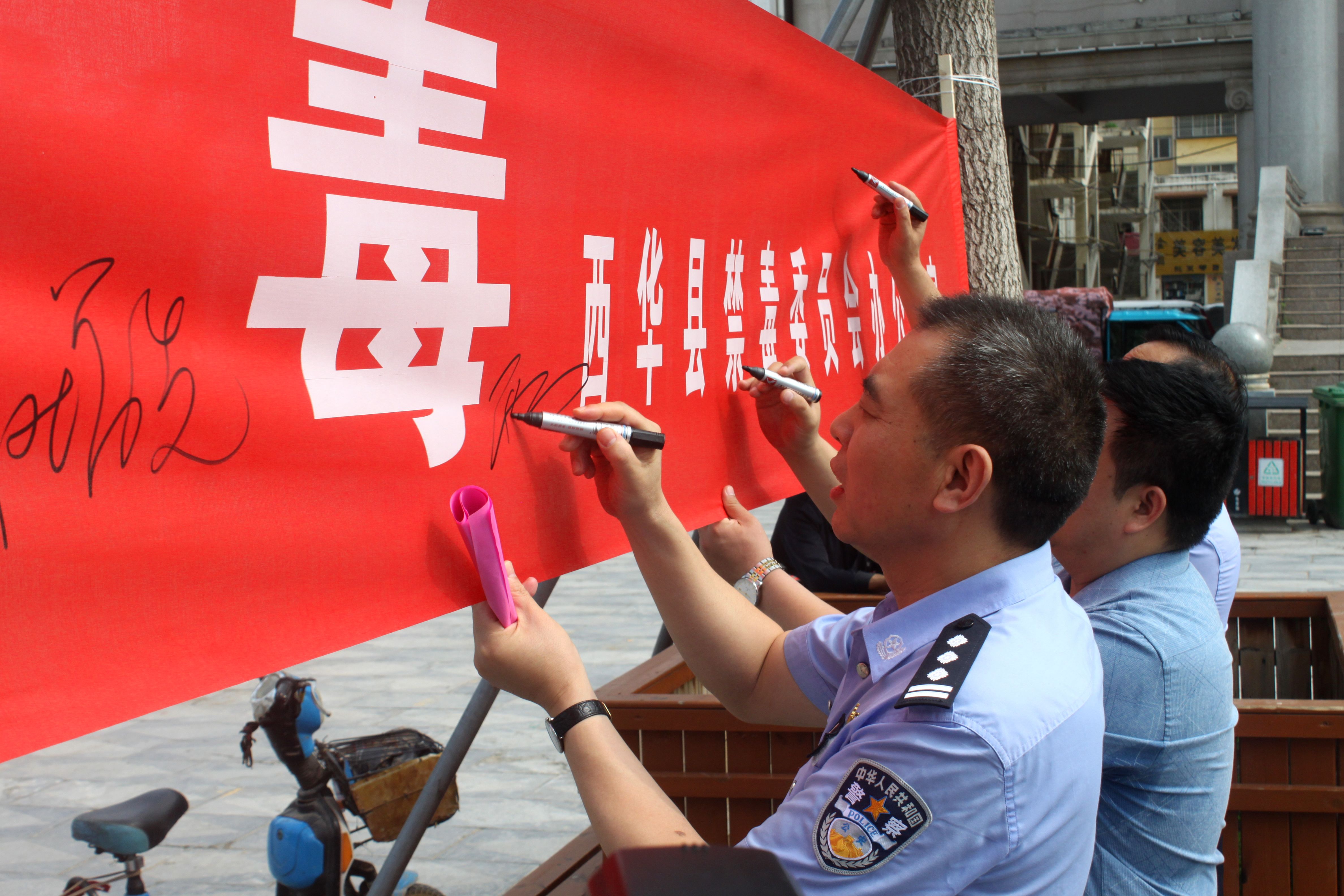 活動(dòng)現(xiàn)場,趙增先在縣公安局政委邢玉周等同志的陪同下,觀看活動(dòng)宣傳展板、在宣傳條幅上簽名,并走上街頭發(fā)放宣傳資料,通過多種形式向過往群眾普及禁毒知識(shí),倡導(dǎo)群眾珍愛生命、拒絕毒品,號(hào)召大家一同加入全民禁毒大家庭,齊心協(xié)力共同抵制毒品。