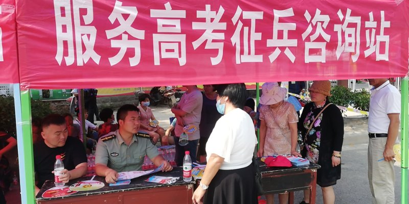 7月8日,太康縣大許寨鎮(zhèn)組織鎮(zhèn)武裝部人員到高考點設(shè)立服務(wù)站,向考生及家長發(fā)放礦泉水、風(fēng)油精及大學(xué)生入伍宣傳冊;服務(wù)考生決戰(zhàn)高考,耐心宣傳入伍政策,少年尚武志,攜筆亦從戎;鼓勵優(yōu)秀畢業(yè)生投身國防、報效祖國。
