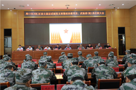 黨管武裝建設(shè)國防,軍民攜手共筑長城。為健全武裝工作組織領(lǐng)導(dǎo)體系為推動國防動員和后備力量建設(shè)在基層末端落實,7月16日上午,周口市川匯區(qū)召開基層武裝黨支部暨政治教導(dǎo)員、武裝委(組)員任職大會。周口軍分區(qū)司令員湯維政,區(qū)委書記、區(qū)人武部黨委第一書記李宗喜,市委組織部處級干部宋陽,區(qū)人武部政委高新傳、部長陳繼芳及城鄉(xiāng)一體化示示范區(qū)、經(jīng)濟開發(fā)區(qū)、港口物流產(chǎn)業(yè)聚集區(qū)等有關(guān)負責同志參加了大會。會上設(shè)立了18個基層武裝黨支部,任命了15名基層武裝部政治教導(dǎo)員、20名村(社區(qū))武裝委(組)員任職命令,武裝部政治教導(dǎo)員、武裝預(yù)建黨支部書記和兼職武裝委(組)員代表先后作了履職承諾發(fā)言,湯維政等為新任命的人員頒發(fā)了任職證書。
