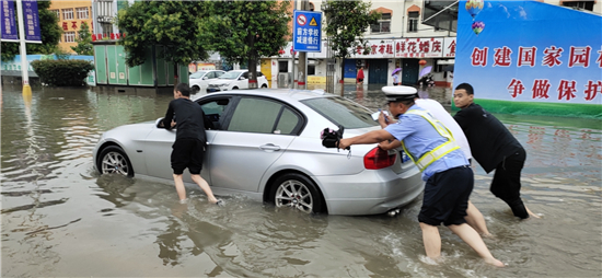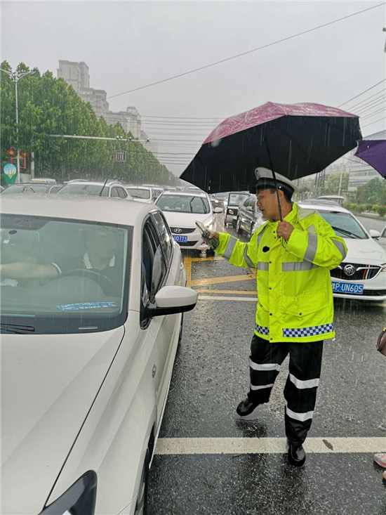 大雨滂沱,交通擁堵。7月22日,針對(duì)市區(qū)降大雨且部分路段出現(xiàn)嚴(yán)重積水的情況,交警及時(shí)啟動(dòng)惡劣天氣應(yīng)急預(yù)案,迅速投入到工作中。