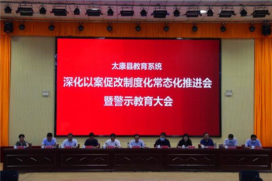 會議觀看了違法違紀典型案例警示教育片;通報了崔世領等6起違紀違法案件處理情況;宣讀了《太康縣教育體育局以案促改領導組名單》、《太康縣教育體育局以案促改督查組名單》和《太康縣教育體育局關于在全縣教育系統(tǒng)黨員干部中集中開展以案促改專項工作的方案》;教體局、太康一高、鄉(xiāng)鎮(zhèn)中心校、中小學校黨員干部代表作表態(tài)發(fā)言。