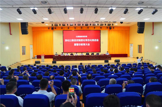 為深入貫徹落實縣委以案促改工作部署要求,8月6日上午,太康縣教育系統(tǒng)召開深化以案促改制度化常態(tài)化推進會暨警示教育會??h政府黨組成員、教體局黨組書記張俊峰、縣紀委副書記、監(jiān)委副主任謝康全、紀委監(jiān)委派駐宣傳部紀檢組組長徐小玲、縣紀委調(diào)研法規(guī)室主任王志飛及教體局全體班子成員出席會議,教體局副股級以上干部、太康一高中層以上領導干部、局直學校班子成員、各鄉(xiāng)鎮(zhèn)中心校校長及支部書記、中小學校校長及支部書記參加會議。會議由教體局局長葛澤洲主持。