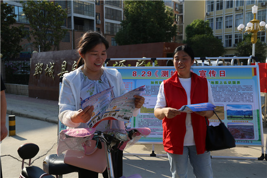 8月28日,在8月29日測(cè)繪法宣傳日到來(lái)之際, 鄲城縣自然資源局立足實(shí)際,層層發(fā)動(dòng)、主動(dòng)創(chuàng)新、多措并舉,緊緊圍繞“規(guī)范使用地圖,一點(diǎn)都不能錯(cuò)!”這一宣傳主題,開(kāi)展了測(cè)繪法宣傳日暨國(guó)家版圖意識(shí)志愿宣傳周活動(dòng)。